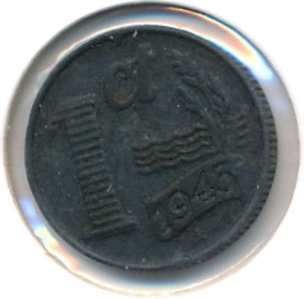 Nederland,1 Cent 1943 zink. Geslagen in oorlogstijd tijdens de 2e wereldoorlog.