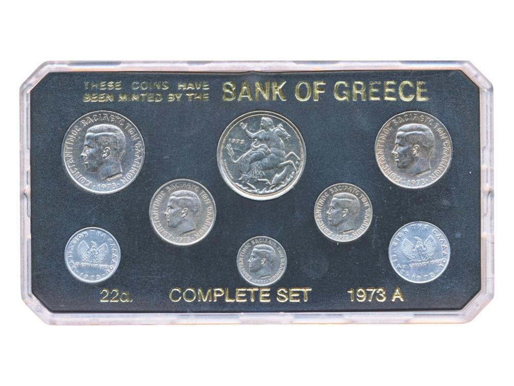 طقم عملات ليبتا ودراخمن اليونان 1973 أ في زجاج شبكي