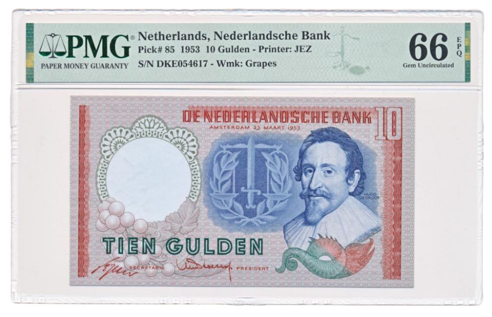 هولندا 10 غيلدر 1953 هوغو دي غروت 1953 PMG66 EPQ