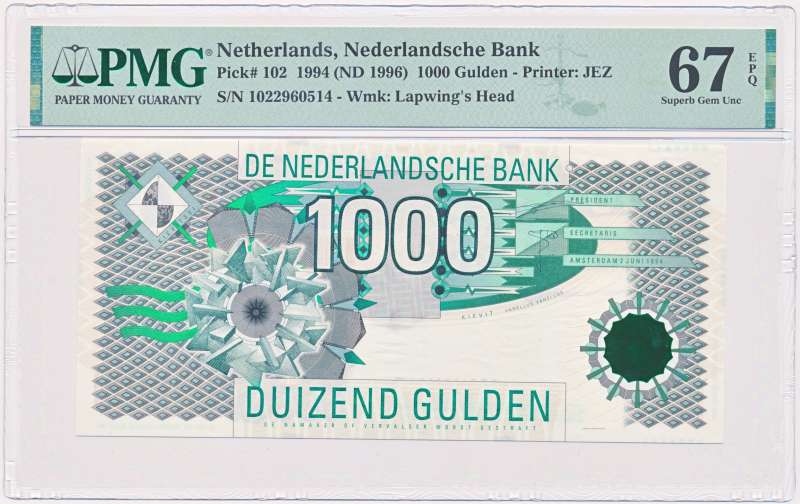 هولندا 1000 جيلدر 1994 كييفيت PMG67 EPQ
