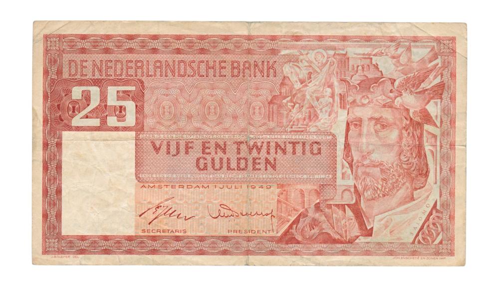 Het biljet met koning salomo werd midden jaren 50 uit omloop genomen toen het werd vervangen door het vijfentwintig gulden biljet met Christiaan Huygens.