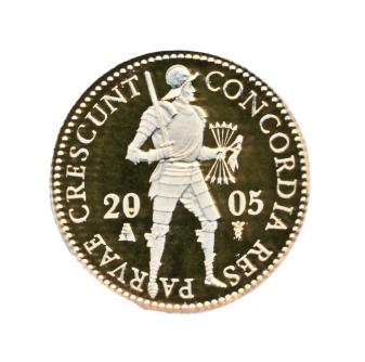 دوكات هولندا الذهبية 2005 الجودة: UNC الوزن: 3,494 جرام محتوى الذهب: 983/1000 صافي الذهب: 3.434602 جرام