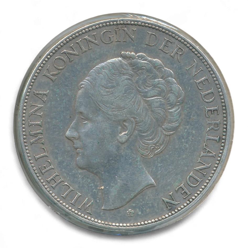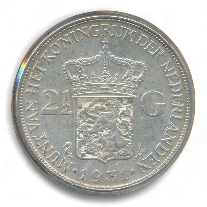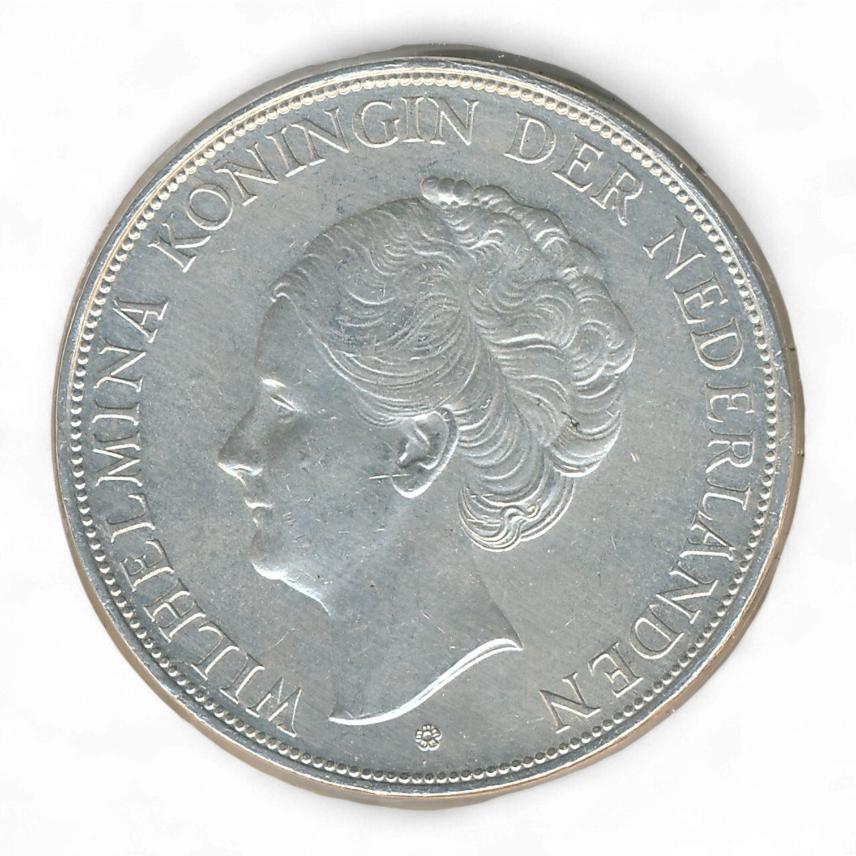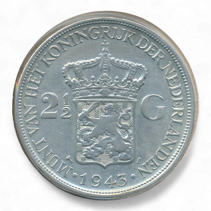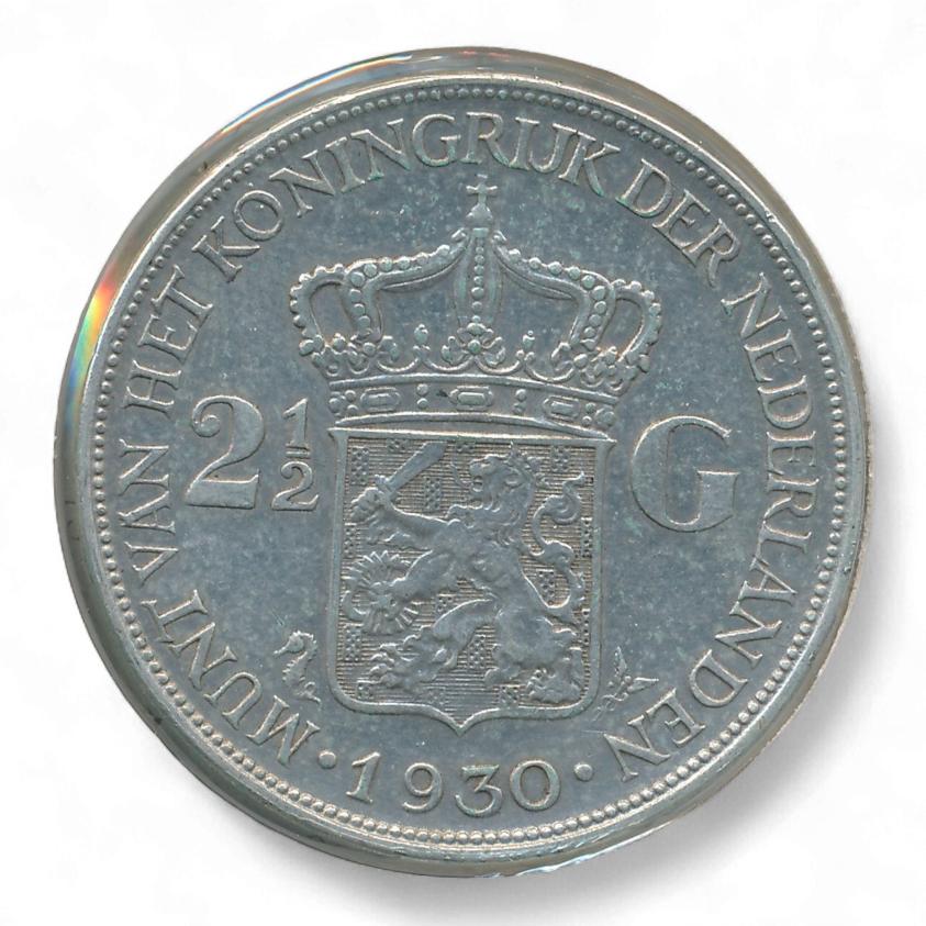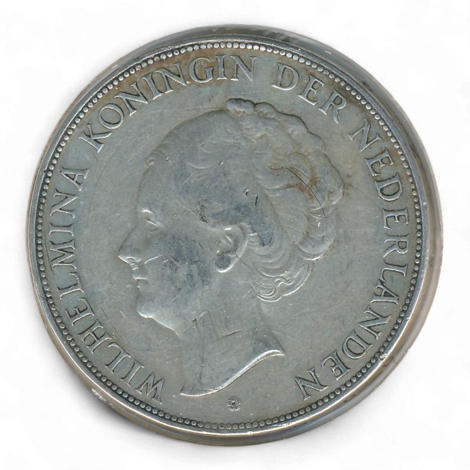 Bevat de volgende serie Nederlandse zilveren 2 1/2 gulden-munten met een portret van Wilhelmima met opgestoken haar naar links: