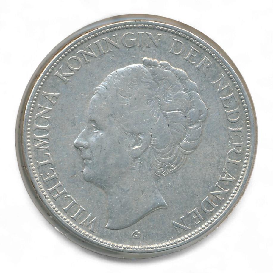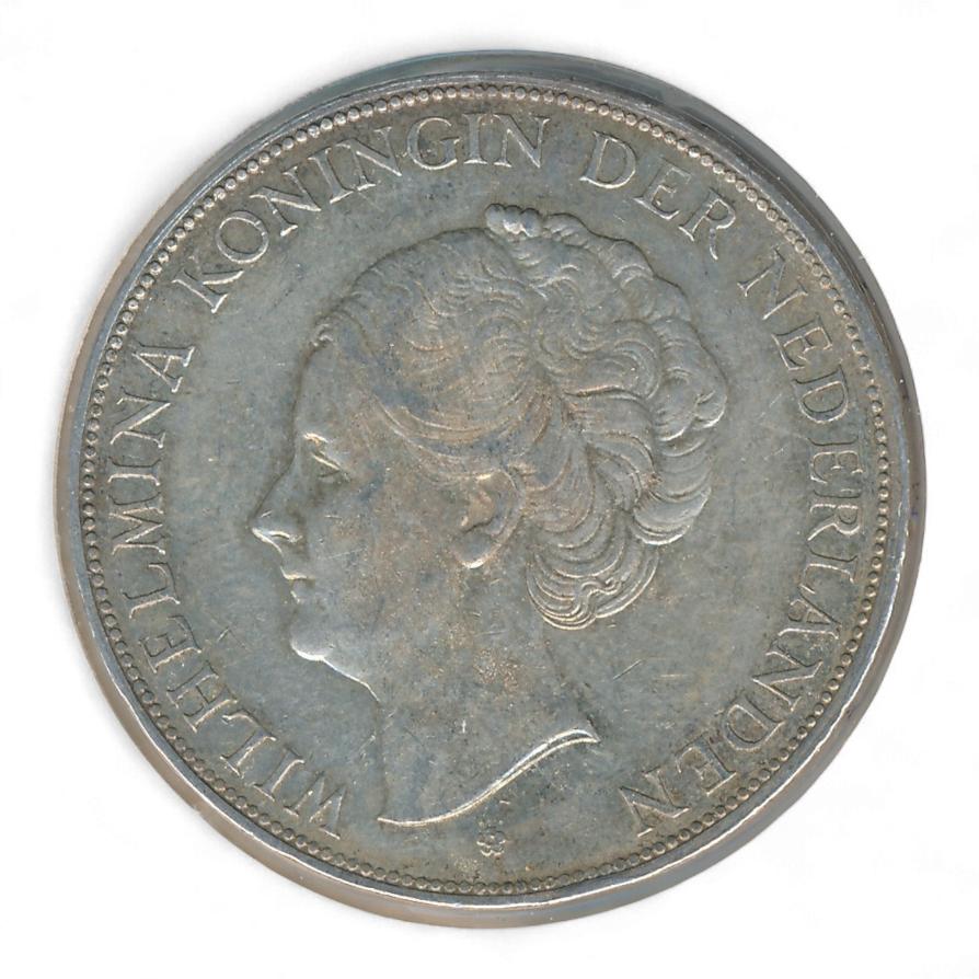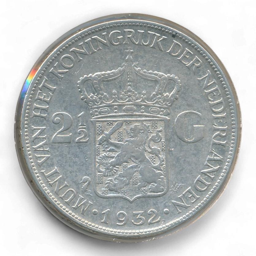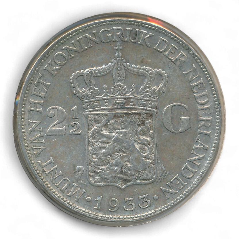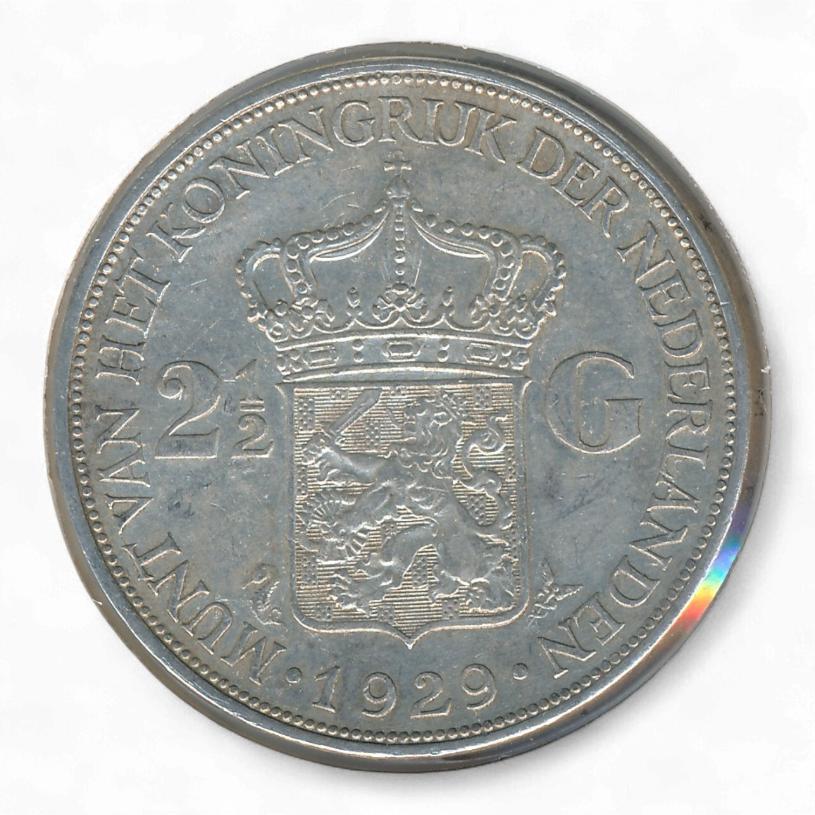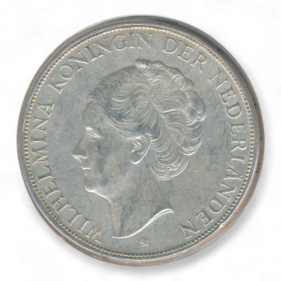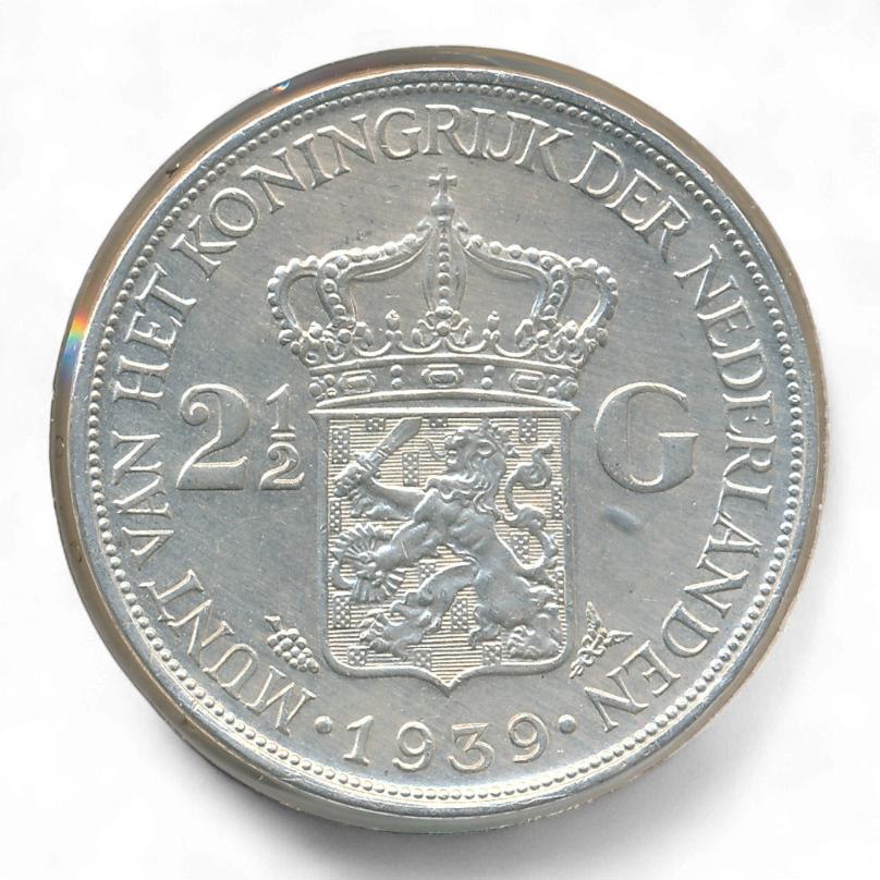 Bevat de volgende serie Nederlandse zilveren 2 1/2 gulden-munten met een portret van Wilhelmima met opgestoken haar naar links: