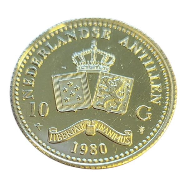 Het gouden tientje van de جزر الأنتيل الهولندية uit 1980 is anders dan de bekende gouden tientjes. Dit tientje is namelijk niet uitgegeven als circulatiemunt, maar om de troonsbestijging van الملكة بياتريكس te vieren. De munt heeft dan ook op de kopzijde het portret van koningin Beatrix afgebeeld, en op de keerzijde is het rijkswapen van de جزر الأنتيل الهولندية te zien.