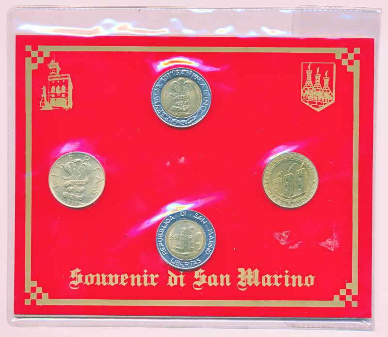 San Marino souvenir muntset Kartonnen achterzijde blanco (beschreven).