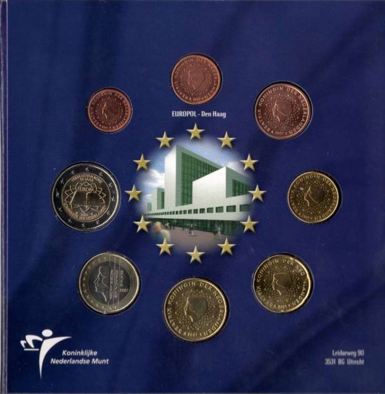 In plaats van de gewone 2 euro, bevindt zich de 2 euro Verdrag van Rome van de 3 landen.