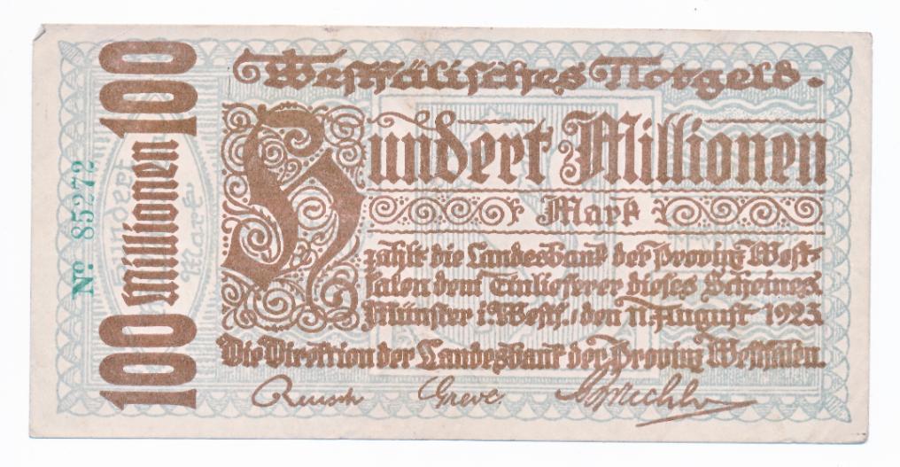 Deutschland 100 Millionen Mark 1923 Westphalen