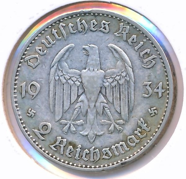 Duitsland 2 mark 1934-A Siehe Scans für weitere Einzelheiten. Bei Fragen können Sie uns gerne eine Nachricht schicken.