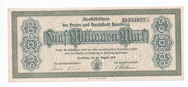 Duitsland 5 Miljoen Mark 1923 Hamburg Siehe Scans für weitere Einzelheiten. Bei Fragen können Sie uns gerne eine Nachricht schicken.