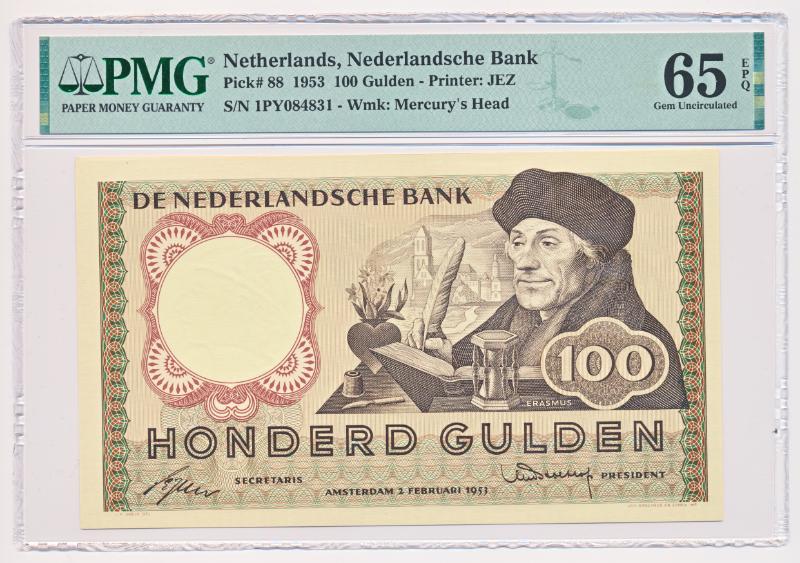 Niederlande 100 Gulden 1953 Erasmus PMG65 EPQ