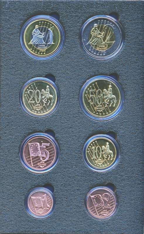 Enthält die Sonde 1 Cent bis die Sonde 2 Euro mit Probe auf der Münzseite.