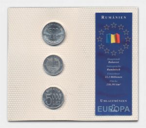 Roemeniรซ muntset Lei diverse jaren in plastic verpakking