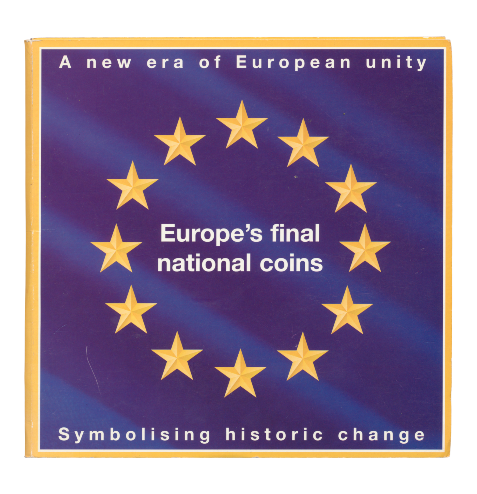 Europa’s laatste nationale munten diverse jaartallen in folder