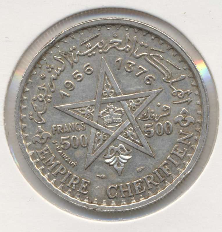 Marokko zilveren 500 francs munt 1956 Krausse: Y# 54