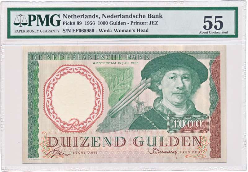 Netherlands 1000 guilder 1956 Rembrandt PMG55