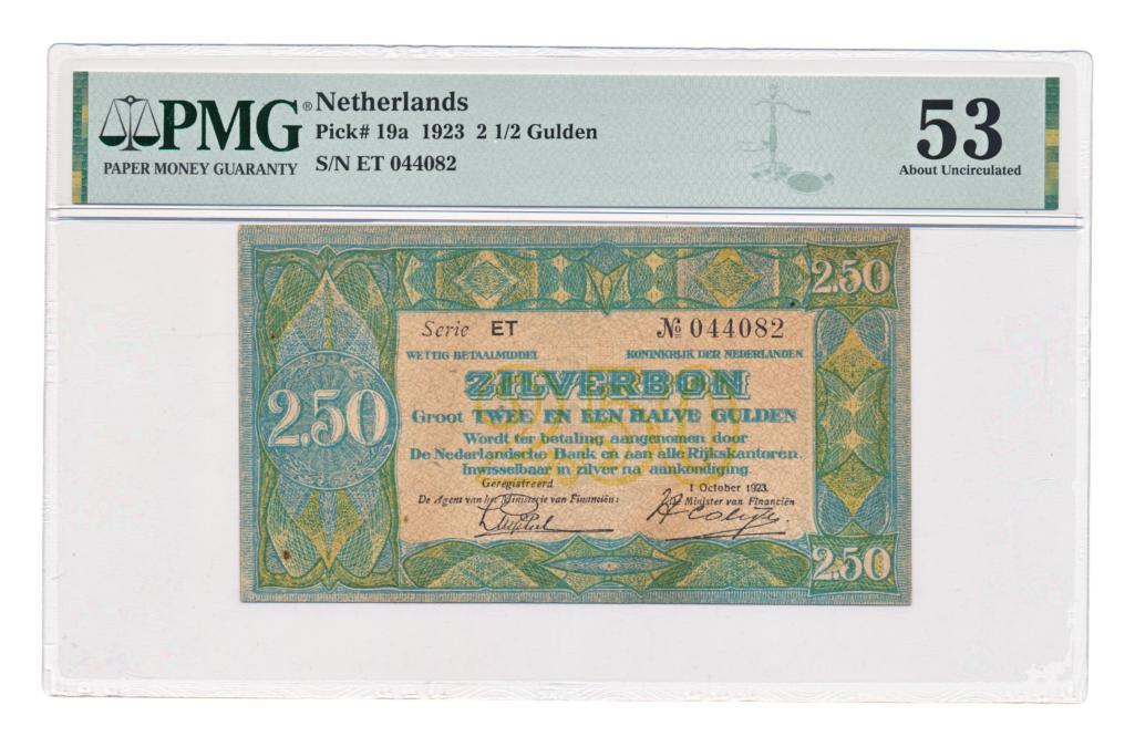 Netherlands 2.5 Guilders 1923 Silver Bond PMG53