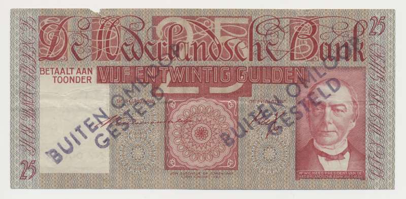 Het vijfentwintig guldenbiljet werd uiteindelijk bij de geldzuivering van 1945 uit omloop genomen.