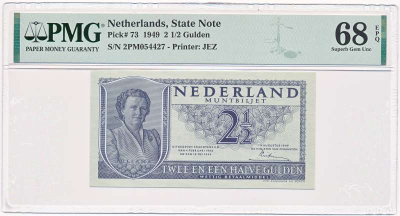 Netherlands 2.5 Guilders 1949 Juliana PMG68