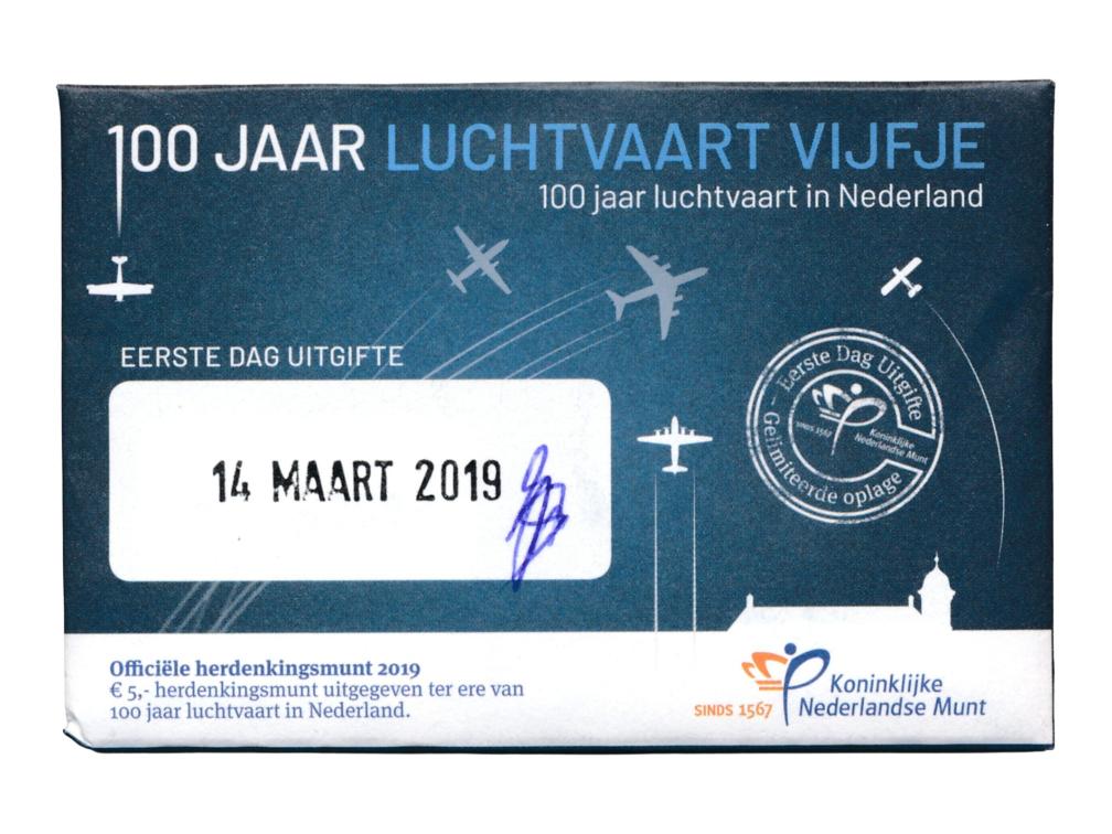 Netherlands 5 Euro 2019 100 years of Aviation First Day Issue in coincard