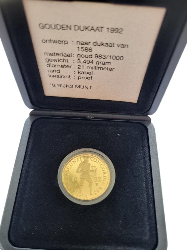 Netherlands Golden Ducat 1992 in cassette Kwaliteit: Proof Weight: 3.494 grams Gold content:983/1000 Net Gold: 3.434602 grams