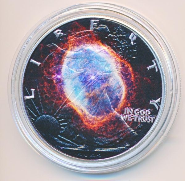 Colored issue of the silver U.S. dollar, also called the eagle.