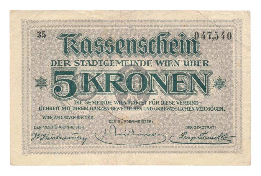 Vienna 5 Crowns 1918 Kassenschein Austrian Emergency Money. Pick: 1183-I-5