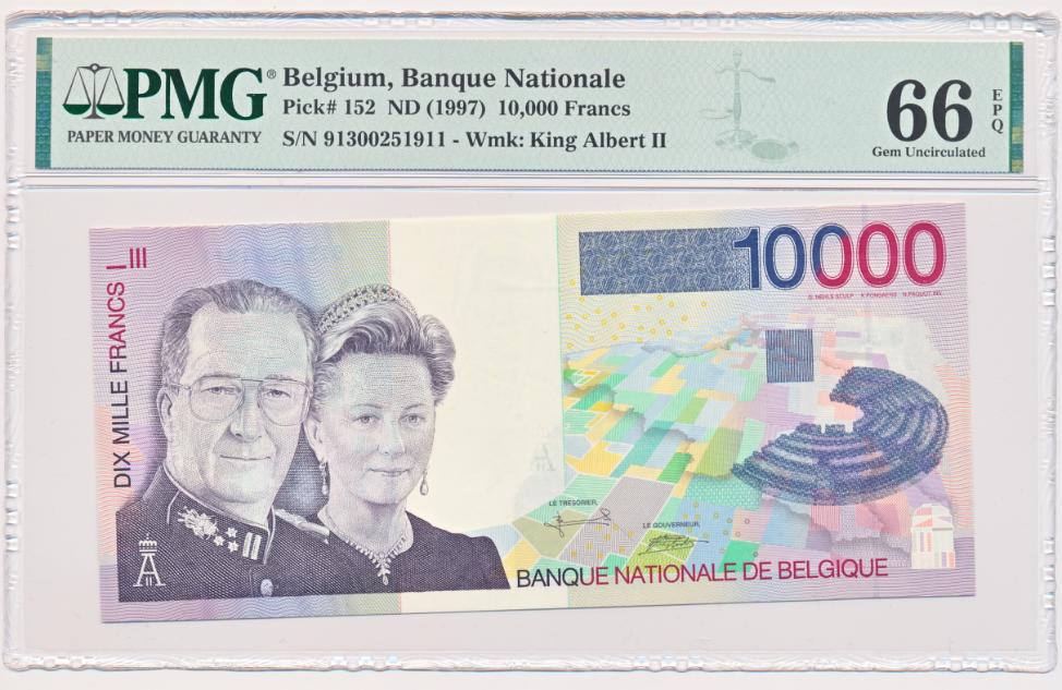 Belgique 10.000 Francs 1997 PMG66 EPQ