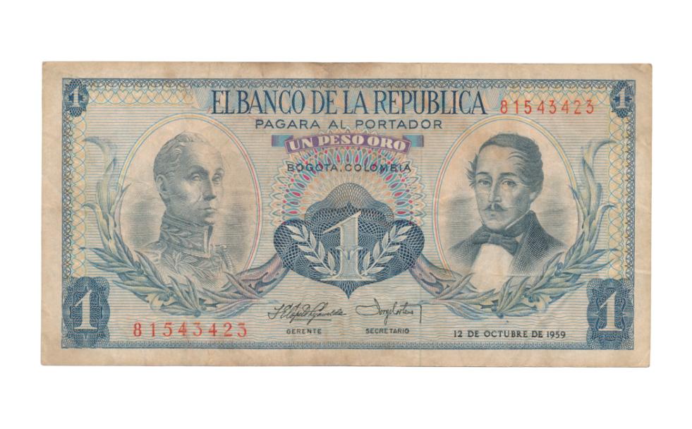 Colombia 1 Peso Oro 1959 (Fraai) Pick: 404a