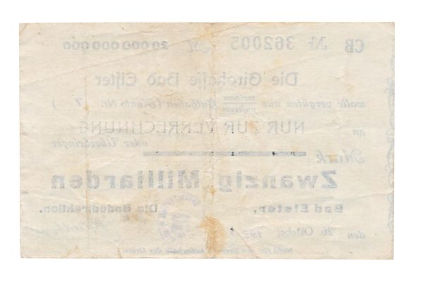 Allemagne 20 milliards de Mark 1923 Argent d'urgence Girobank Bad Elster
