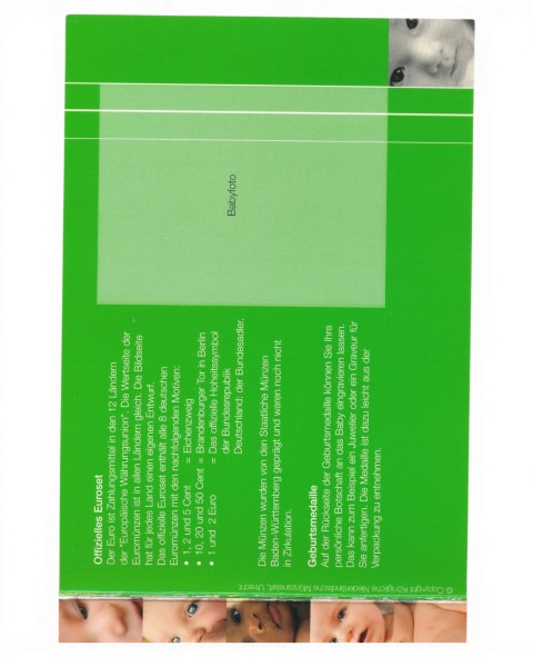 Inclusief Babypenning (Cupro-Nikkel) met de tekst: ‘Strampelnd vor Ungeduld bin ich heute auf die Welt gekommen!’