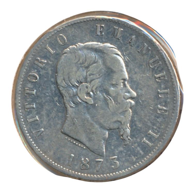 Italie 5 Lire 1873 (Très bon-) Groot formaat: diameter 37 mm, gewicht 25 gram. Zilvergehalte: 900/1000. Voir les scans pour plus de détails. Pour toute question, n'hésitez pas à nous envoyer un message.