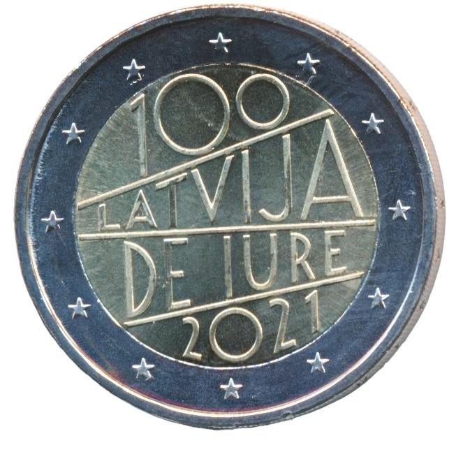 Lettonie 2 Euro 2021 100 ans de reconnaissance internationale