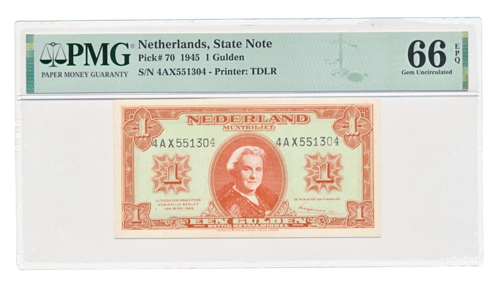 Nederland 1 Gulden 1945 Wilhelmina PMG66 EPQ