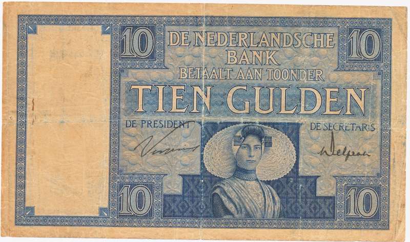 Vanaf 1924 kwam er een nieuw tientje in omloop, het ‘Zeeuwse meisje’. Het idee was dat het geld de Nederlandse cultuur zou afbeelden waardoor het de bevolking meer aan zou spreken. Het biljet van tien gulden ‘Zeeuws meisje’ is ontworpen door J. Visser jr. De vrouw op het biljet is Geetrui Walraven, dienstbode van de Nederlandsche Bank te Middelburg. Zij draagt Zuid-Bevelandse klederdracht. De biljetten van 1919-1924 werden door het publiek niet erg gewaardeerd en werden dan ook veel vervalst. Het tientje met het ‘Zeeuwse meisje’ draagt de handtekeningen van DNB-President Vissering en DNB-Secretaris Delprat. Het Zeeuws meisje is onderdeel van de serie bankbiljetten van begin jaren 20, en naast het Zeeuws meisje waren er ook nog de: