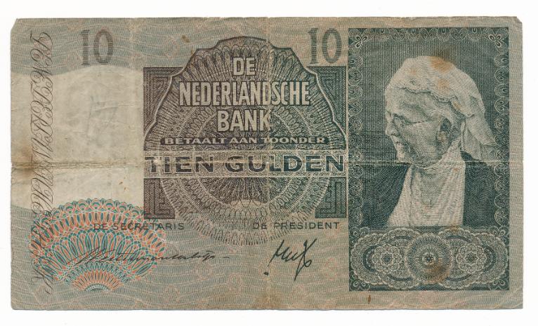 Het tien guldenbiljet met Emma werd tijdens de bezetting vervangen omdat het een link had met het koningshuis, en daarmee de bezetter niet ten goede zou komen. Het biljet werd in 1941 uit omloop gehaald en vervangen door een soortgelijk ontwerp met een afbeelding van een herderin.