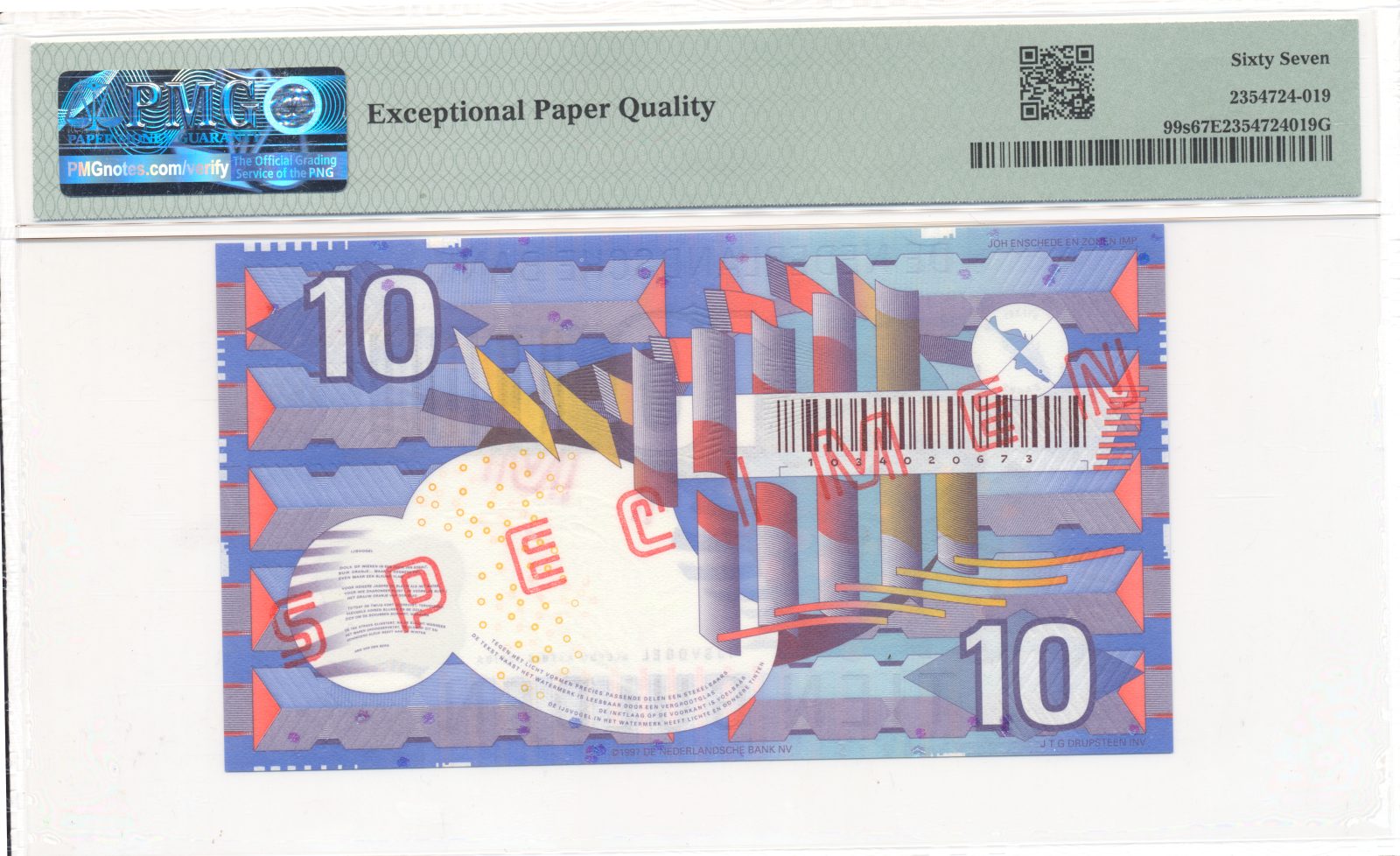 Pays-Bas 10 florins 1997 martin-pêcheur Spécimen PMG67 EPQ