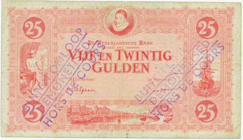 Pays-Bas 25 florins 1930 Guillaume d'Orange Écriture retirée de la circulation NVMH:75-1 Plomp:PL60.b