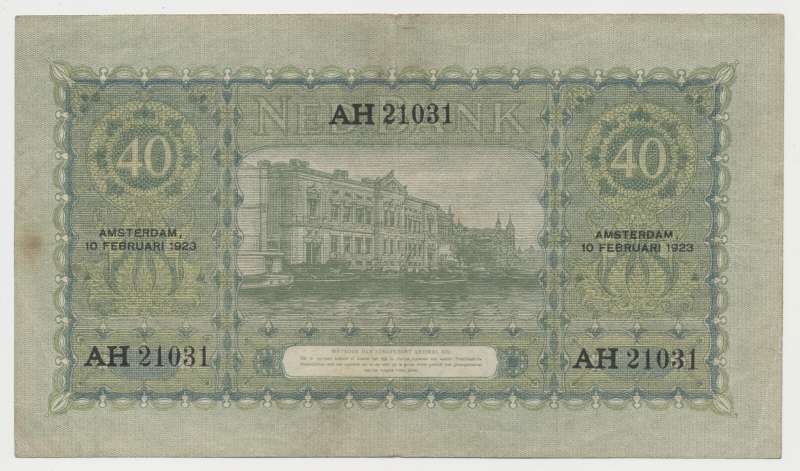 40 guldenbiljet. Serie met 2 letters en 5 cijfers.