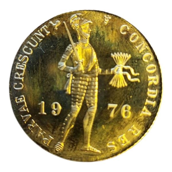 Ducat d'or des Pays-Bas 1976 Qualité : UNC Poids : 3 494 grammes Teneur en or : 983/1000 Or net : 3,434602 grammes