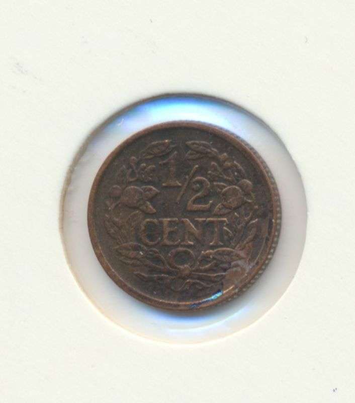 Le demi-centime de Reine Wilhelmina Frappé de 1891 à 1940, le demi-cent pèse 1,25 gramme et a un diamètre de 14 millimètres. L'avers de la pièce représente un lion et le revers indique la valeur d'émission. Outre le demi-cent de Reine Wilhelmina les pièces suivantes étaient encore émises sous son règne :