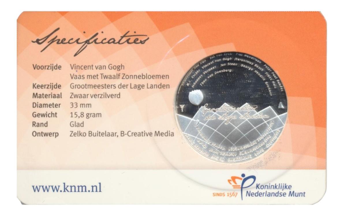 Nederland Vincent van Gogh-penning in kleur in coincard