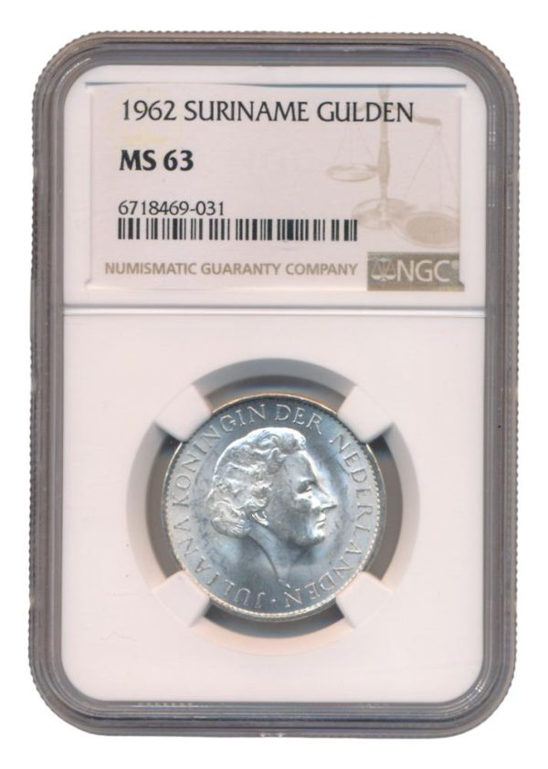 Suriname 1 Gulden 1962 MS 63 in slab