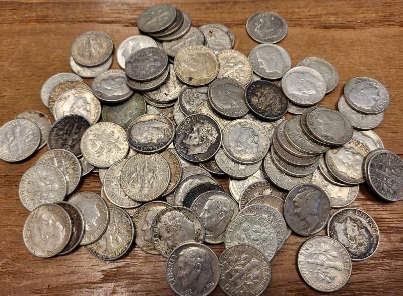 De zilveren dimes (10 cent) van Amerika dateren voornamelijk uit de jaren 1946-1964, maar kunnen ook dimes bevatten van eerdere jaren.