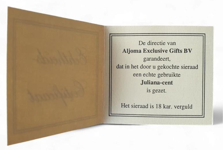 Met echtheidscertificaat van Aljoma Exclusive Gifts bv.