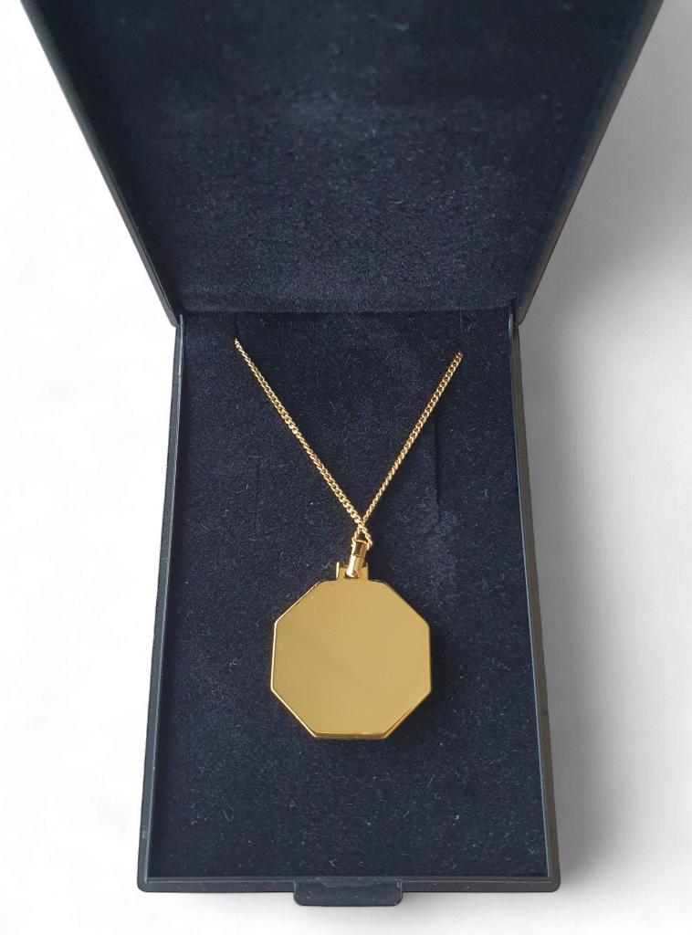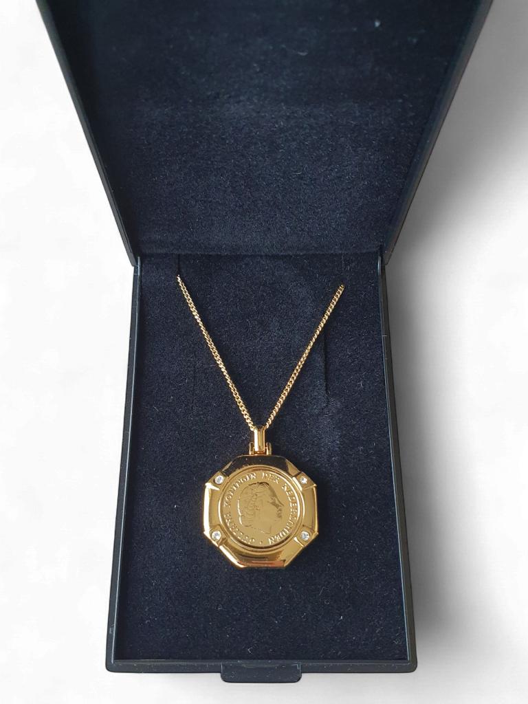 De hanger bestaat uit een originele gebruikte Nederlandse Juliana-cent. Het sieraad is 18 karaats verguld. De ketting is 45 cm lang.
