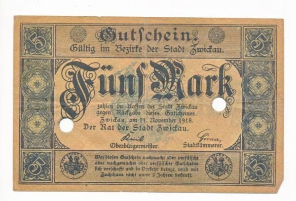 Duitsland 5 Mark 1918 Zwischau Zie scans voor meer details. Voor vragen, stuur ons gerust een bericht.
