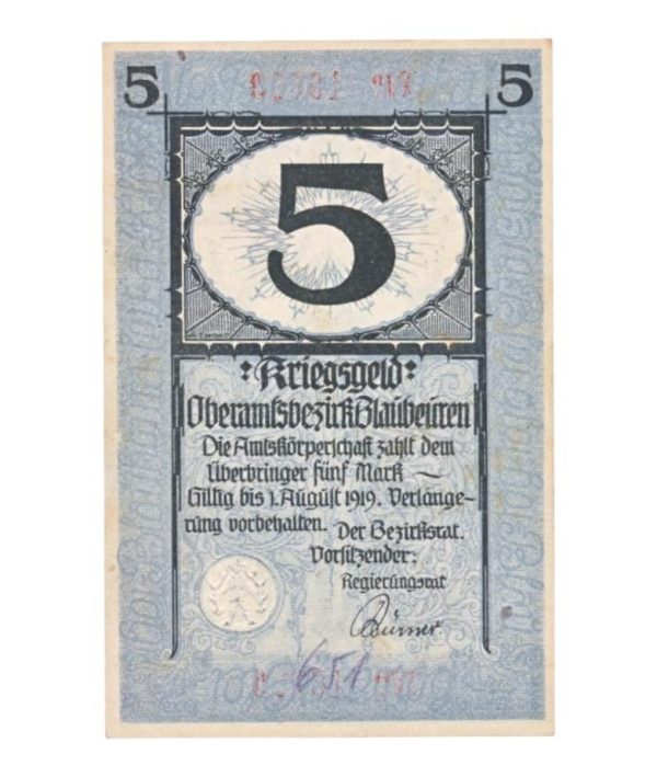 Duitsland 5 Mark 1919 Oorlogsgeld Blaúbeúren Zie scans voor meer details. Voor vragen, stuur ons gerust een bericht.