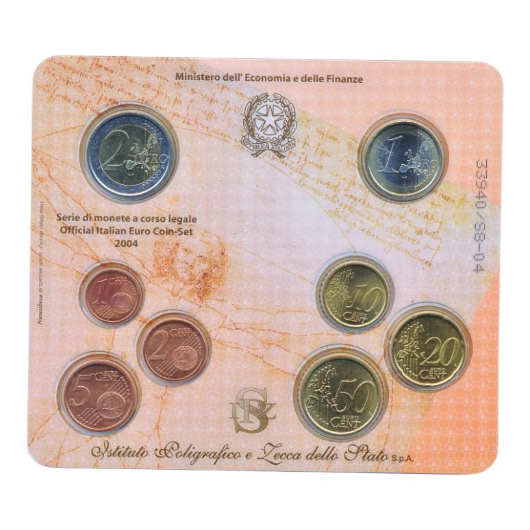 Italië Jaarset euro 2004-II BU De set bevat de 1 eurocent t/m 2 euro in BU-kwaliteit.