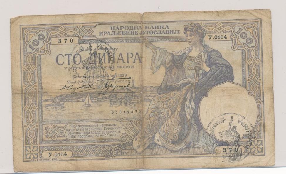Joegoslavië 100 Dinars 1929 met Italiaanse stempels uit WO2